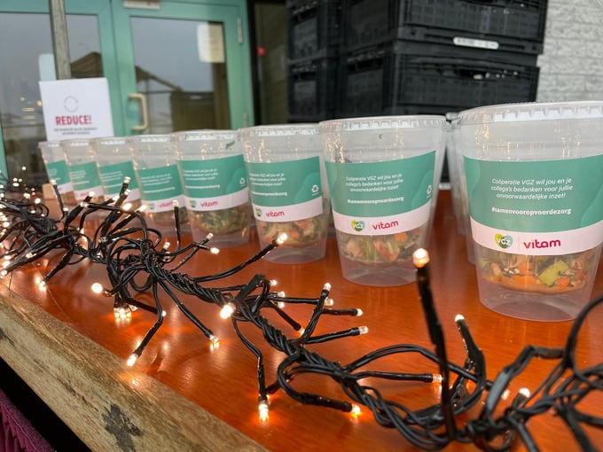 Het is nog steeds een zware tijd voor de zorgmedewerkers. Onze opdrachtgever Coöperatie VGZ wil hen daarom steunen en bedanken door een smakelijke oppepper aan te bieden. En daarvoor hebben ze de samenwerking met Vitam opgezocht.